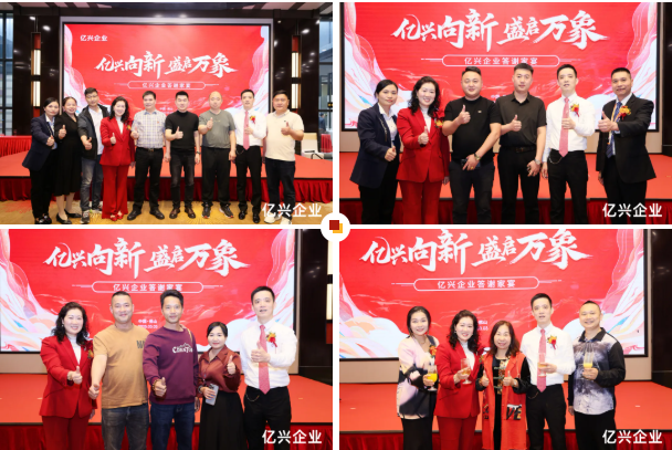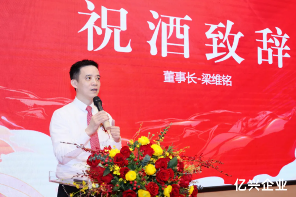 答谢午宴伊始,亿兴企业营销中心总经理欧添英作致辞,言语间洋溢着对各方支持的感恩之情。随后,欧总详细介绍了亿兴企业在产品研发、市场拓展及品牌建设等方面的发展情况,并强调新营销中心的投入将作为企业与市场紧密连接的关键枢纽,是达成2025年任务目标的重要一步,标志着亿兴企业开启了品牌升级与市场拓展的全新征程。