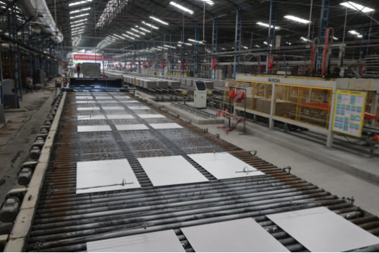凭借在绿色环保、智能智造方面的前瞻性战略布局,极简大板产品生产线集智能智造、数字化、节能环保于一体,配备节能窑炉、超级压机、数字化智能釉线等,利用大数据、5G+数采、MES制造执行系统等技术,打造互联网+全面质量管理模式,减少材料损耗,助力产品战略延伸,进一步扩大行业领先优势和竞争优势。
