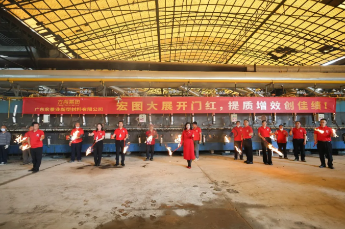 在宏景制造中心内,方向集团董事总经理刘丽燕作开工动员:“今天是新的开始,四条窑炉火力全开,希望大家能够拿出更硬的作风,